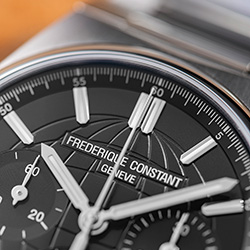 Что касается циферблата, в каждой версии он оснащен хронографом Compax с малой секундной стрелкой в положении «9 часов», 30-минутным счетчиком в положении «3 часа» и 12-часовым счетчиком в положении «6 часов», который уравновешивает надпись Frederique Constant, Genève, расположенную у отметки «полдень». Их дополняют три центральные стрелки с ручной полировкой: люминесцентные часовая и минутная и центральная секундная стрелка хронографа. В каждую модель также добавлено второе усложнение, которое будет полезно в повседневной жизни — датой, незаметно расположенной в специальном окошке между 4 и 5 часами.