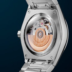 Наконец, сквозь заднюю крышку часов можно увидеть автоматический механизм, приводящий их в движение. Это калибр FC-303, украшенный спиральным узором и гарантирующий 38-часовой запас хода.