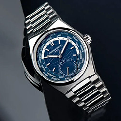 Техника сочетается со стилем. Современный дизайн корпуса диаметром 41 мм из стали и циферблата с гравировкой в виде глобуса – это ода путешествиям. Калибр производства FC-718 предназначен именно для этого. Механический механизм с автоподзаводом имеет запас хода 38 часов. Он виден через заднюю часть корпуса, водонепроницаемость до 50 метров. Полюбуйтесь типичными женевской отделкой, которую так любит Frederique Constant. Среди нее перлаге и круглые Кот-де-Женева.