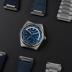 Чтобы отметить появление новой модели, мануфактура создала для нее три ремешка. Это большая редкость в современном часовом деле. Встроенный сменный ремешок из коллекции Highlife стал одной из ее характерных особенностей, и производитель хотел подчеркнуть его важность. Первый вариант – это полированный и матовый трехзвенный стальной ремешок со складывающейся пряжкой. Второй – синий ремешок с отделкой из шелковистого нубука. А третий – синий резиновый ремешок, дополняющий городской стиль часов.