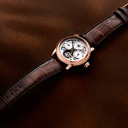 Две другие версии оснащены лаконичным и изысканным циферблатом серебристого цвета с гильошированным узором Clous de Paris и нанесенными печатным способом римскими цифрами. Эти изумительные часы предлагаются с корпусом из нержавеющей стали с покрытием из 18-каратного розового золота и коричневым ремешком из кожи аллигатора или с корпусом из полированной нержавеющей стали и черным ремешком из кожи аллигатора.