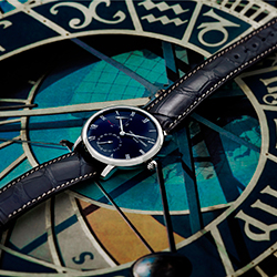 Новая линейка состоит из четырех моделей в корпусе диаметром 40 мм из нержавеющей стали с покрытием из розового золота и без него. На циферблате серебристого, темно-серого или темно-синего цветов с отделкой «Солнечные лучи» отчетливо выделяются римские цифры и отполированные вручную стрелки белого или черного цвета. Завершающий штрих привносит элегантный крокодиловый ремешок с раскладывающейся застежкой.