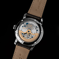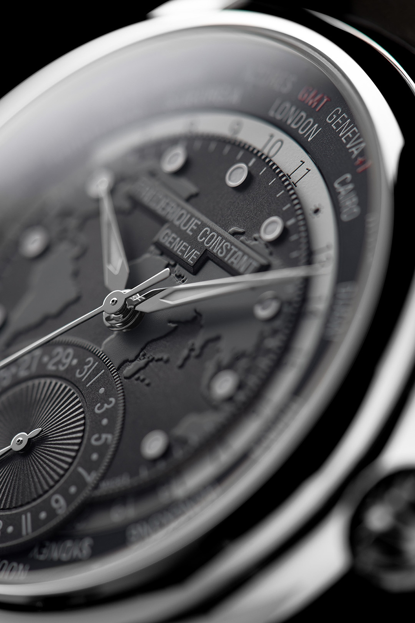 На часах выделяются два отдельных диска: первый – с 24-часовым индикатором день-ночь, второй – с названиями 24 городов. Поскольку калибр FC-718 является механизмом собственной разработки бренда, он украшен отделкой перлаж (зернение) и круговым узором Côtes de Genève. Имеет запас хода 42 часа. Темно-серый хронометр комплектуется темно-серым ремешком из крокодиловой кожи с белыми стежками.