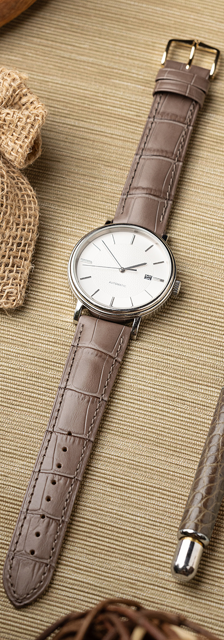 Изготовленный из итальянской телячьей кожи с имитацией кожи аллигатора, ремешок обладает полуматовой поверхностью с характерным двухтональным эффектом. Каждая деталь продумана до мелочей: от утончённой строчки тон в тон до изящной пряжки в традиционном дизайне HIRSCH. Обновлённая палитра включает жизнерадостные цвета: ярко-жёлтый, оранжевый, насыщенно-розовый и небесно-голубой — для тех, кто не боится заявить о себе.