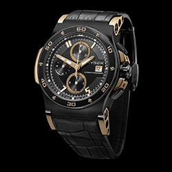 4. Hysek Abyss 44mm Chronograph 10th Anniversary Black PVD AB4402B03: титановый корпус с PVD-покрытием чёрного цвета, чёрный безель, чёрный циферблат и чёрный кожаный ремешок. |