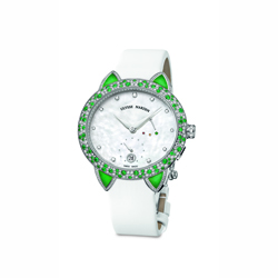 В коллекции «Jade» обработанные минералы нефрита украшают безель и очень хорошо сочетаются с изумрудами, бриллиантами и перламутровым циферблатом. Часы новой женской коллекции убедительно доказывают, что мануфактура «Ulysse Nardin» способна создавать не только принципиально новые калибры, но и весьма привлекательные коллекции часов для женщин.