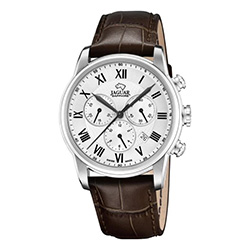 Серия J968 - это костюмные хронографы для ценителей классики. Часы оснащены калибром Ronda 5030D и предлагают различные варианты оформления циферблатов: с римскими, арабскими цифрами или индексами. Отделка «Парижские гвозди» и концентрические круги на субдисках придают моделям респектабельность, а кожаные ремешки «под аллигатора» завершают образ.