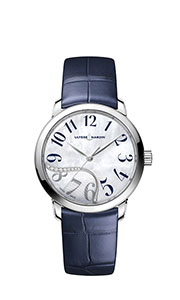 Новые часы представлены в женственных цветовых оттенках. Первая модель имеет синий ремешок из кожи аллигатора и синие арабские индексы на циферблате. Еще две модели – с белым ремешком, метками серого цвета или оттенка спелой вишни в сочетании с роскошью перламутра и блеска бриллиантов. Часы с серым и синим креплением также доступны в корпусе без бриллиантов.