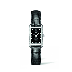 Чёрный лаковый полированный циферблат оснащён центральными стрелками часов и минут, малой секундной стрелкой с собственной шкалой (между центром циферблата и отметкой «6 часов»). Роль условных часовых индексов играют 13 бриллиантов цвета Top Wesselton VS общий вес, которых составляет 0,059 карата.