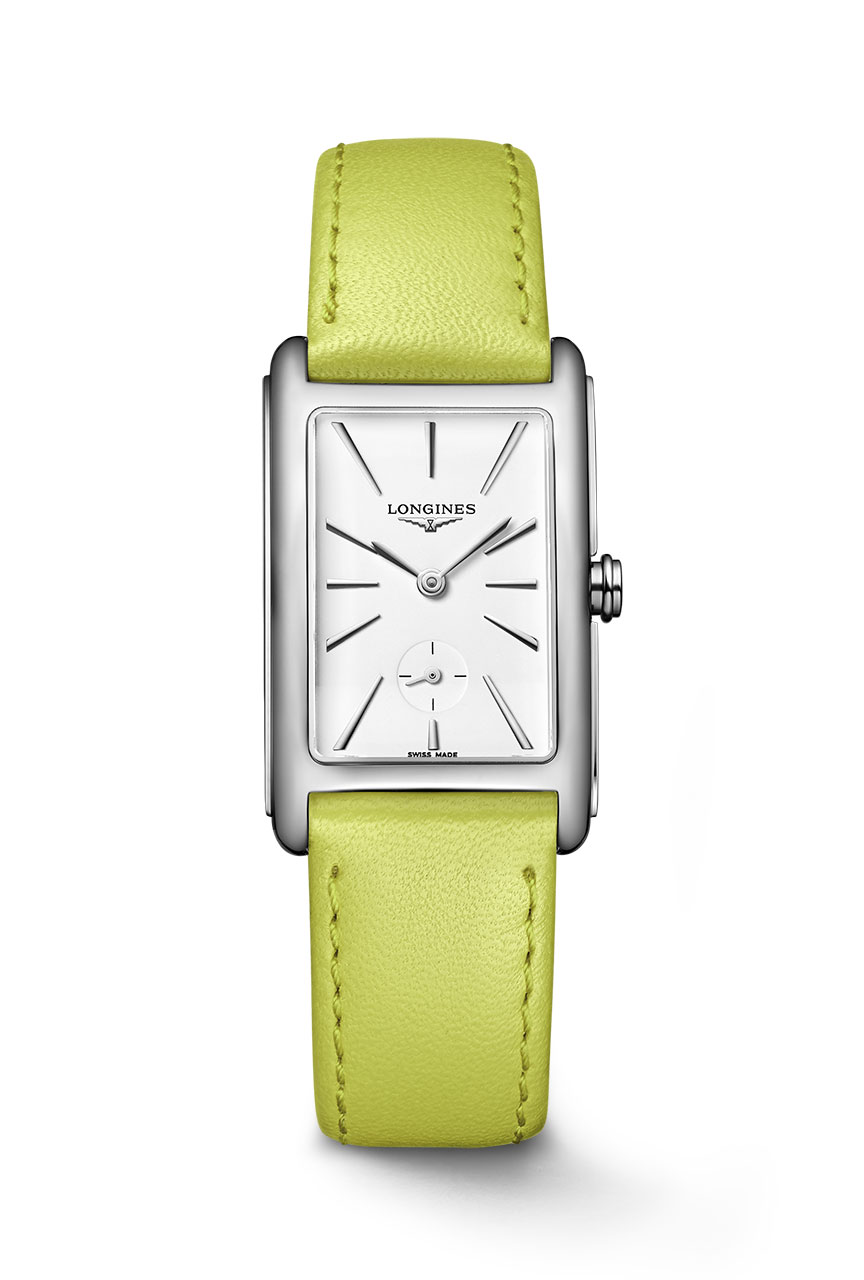 Яркие цвета придают особый колорит коллекции и позволяют подобрать часы по своему вкусу. Впервые Longines – бренд с крылатыми песочными часами на логотипе – представляет сменные ремешки восьми ярких оттенках. Они доступны в ярко-желтом, насыщенном оранжевом, элегантном бежевом, коралловом, светло-коричневым, темно-зеленом, бирюзовом и салатовом цветах. Сменные кожаные ремешки можно подобрать по собственному вкусу и настроению, что позволит подчеркнуть индивидуальность владельца. Ремешки доступны в двух размерах: S и M.