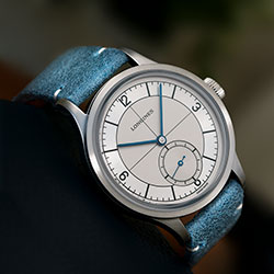 Корпус дополняет синий или матовый черный кожаный ремешок, украшенный бежевой прошивкой. Оба варианта дополнены кожаным ремешком НАТО с эффектом джинсовой ткани антрацитового или синего цвета соответственно. Специальный инструмент, идущий в комплекте с каждой моделью, позволяет легко поменять их местами.