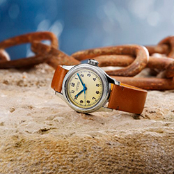 В результате получилась оригинальная модель диаметром 33,50 мм с типичными для военных моделей прочным корпусом и безелем и оснащенная историческим механизмом Longines 12.68 N с ручным подзаводом.