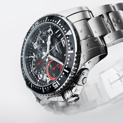 Часы предлагаются с браслетом из нержавеющей стали либо – с ремешком из чёрного каучука с двойной складной застёжкой и дополнительной регулировкой для увеличения размера ремешка и браслета.