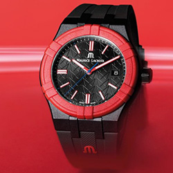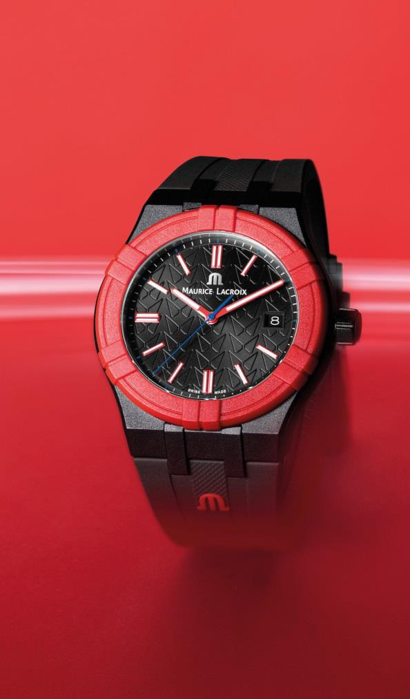 Теперь две заботящиеся об окружающей среде фирмы объединили усилия, кульминацией которых стал выпуск новых часов AIKON #tide Mahindra, выполненных в цветах гоночной команды и украшенных циферблатом с логотипом команды. Увековечивая историю #tide, эта новая модель снова изготовлена из переработанного океаном пластика. Он оснащен черным циферблатом и соответствующим 40-миллиметровым корпусом. Безель выполнен в красном цвете, а на черном каучуковом ремешке изображен логотип Maurice Lacroix с буквой «M», также выполненный в ярком красном оттенке. Кроме того, часы поставляются со вторым ремешком – на этот раз из красной резины с черными вставками. Оснащен системой легкой замены ремешков Maison, которая позволяет легко менять один ремешок на другой без использования инструментов.