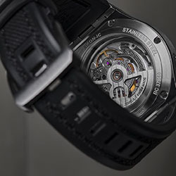 - Циферблат: антрацитовый, скелетонизированный, вертикальная шлифовка