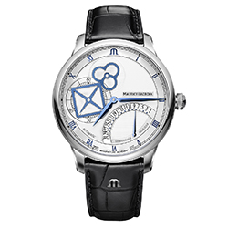 Компания Maurice Lacroix впервые в своих моделях сочетает сложную функцию с квадратным колесом и ретроградную индикацию. Само название часов – Maurice Lacroix Masterpiece Square Wheel Retrograde отражает не имеющую аналогов эстетику модели. Несмотря на авангардный характер неординарного циферблата все показания считываются максимально легко.