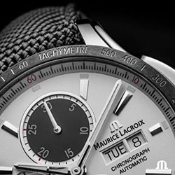 На первый взгляд кажется, что на циферблате всего два счетчика, расположенных вдоль оси север-юг. Однако при ближайшем рассмотрении оказывается, что в положении «9 часов» есть небольшая секундная стрелка, а напротив нее – индикация дня и даты, которые легко читаются. Доминирующие счетчики состоят из 30-минутного регистра в положении «12 часов» и 12-часового регистра внизу, каждый из которых имеет обработанные пескоструйной технологией центры и обрамлен деталями в виде улитки. Команда дизайнеров Maurice Lacroix обогатила композицию многочисленными элементами, разместив компоненты циферблата на разной высоте и разумно используя цвета, чтобы обогатить опыт владения.