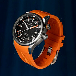 Специальная заводная головка, расположенная на отметке «2 часа», позволяет пользователю регулировать внутренний вращающийся безель. Он имеет отсчетную шкалу и является удобным способом измерения времени, проведенного под водой. Часы также оснащены центральной секундной стрелкой и индикацией даты в положении «6 часов». Вторая заводная головка, расположенная в положении «3 часа», регулирует различные показания, а также может использоваться для ручного механизма подзавода.