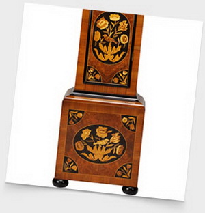 Напольные часы , которые производятся фабрикой Comitti of London сегодня, отражают все умения и традиции этого теперь уже ушедшего века. Сухая и крепкая древесина твёрдых пород и исключительного качества шпон и фанера были выбраны за их природную красоту и долговечность. Шпон разрезается и подгоняется друг к другу, выкладывается по технике маркетри , а уже затем подгоняется и полируется вручную, так что каждое такое произведение является уникальным и искусным.