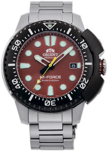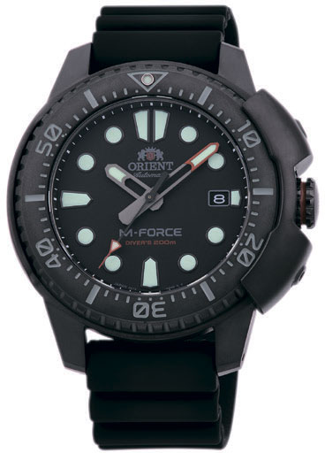 Новая модель ORIENT M-Force унаследовала все основные элементы своих предшественников этой серии. Часы имеют массивный брутальный вид, но при этом соответствуют всем веяниям современности. Диаметр корпуса моделей с защитными частями составляет 47,3 мм.