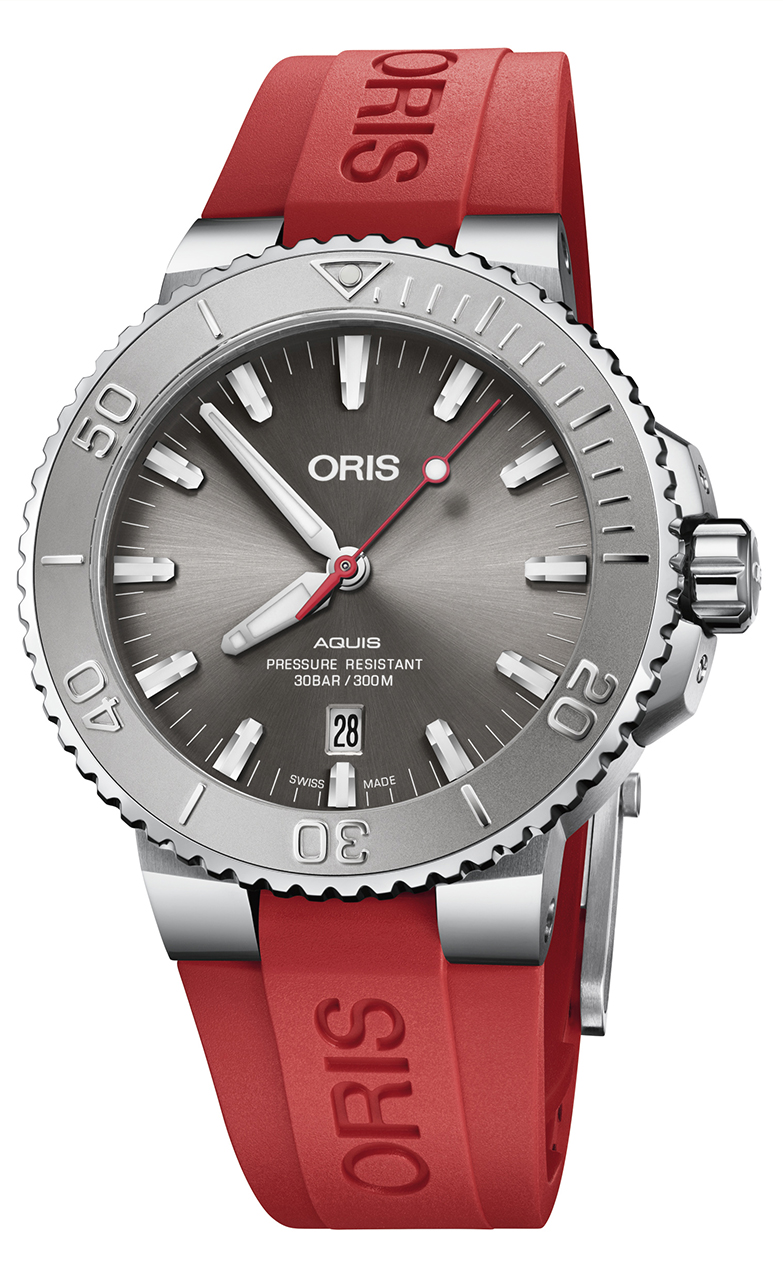 Дизайн и функциональность новых часов базируются на модели Oris Aquis Date. Корпус диаметром 43,5 мм изготовлен из нержавеющей стали, оснащен дайверским поворотным ободком однонаправленного вращения. Водонепроницаемость до 300 метров (30 атм.). Циферблат с покрытыми люминесцирующим составом SuperLumiNova® накладными маркерами часовой шкалы и стрелками защищен сапфировым стеклом. Часы крепятся либо на ремешке в различных вариантах исполнения, либо на металлическом браслете.