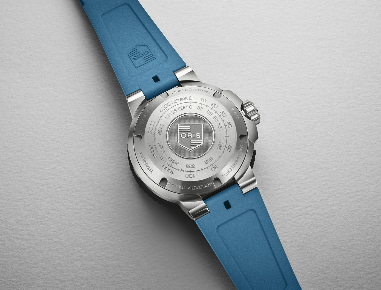 Компания Oris представляет свои самые водонепроницаемые часы для дайверов - AquisPro 4000m. Титановый корпус, способный выдерживать давление до 400 бар (4000 метров), делает их идеальным выбором для профессиональных дайверов. Часы оснащены уникальными технологиями, включая безопасную систему вращения безеля, созданную Oris совместно с экспертами-дайверами, а также инновационную систему регулировки ремешка.