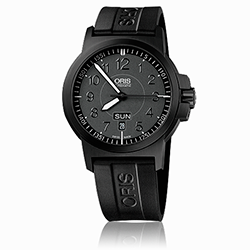 2. Oris Aviation BC 3 Advanced Day Date 01 735 7641 4764-07 4 22 05B Многокомпонентный корпус из нержавеющей стали с чёрным DLC-покрытием. Чёрный люминесцирующий циферблат с арабскими цифрами, выполненными по технологии «Stealth», с условными часовыми индексами и стрелками, покрытыми люминесцентным составом «Superluminova BG W9». Чёрный каучуковый ремешок с застёжкой из нержавеющей стали с чёрным PVD-покрытием. |