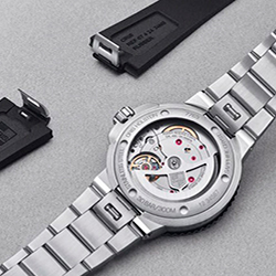 При этом часы сохранили 300-метровую степень водостойкости (30 атм.), поворотный дайверский ободок одностороннего вращения, защищенный нецарапаемой керамической накладкой, который помогает надежно определять длительность погружения, а также стрелки и индексы с люминесцирующим покрытием Super-LumiNova®.
