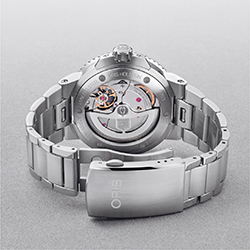 Помимо того, новые часы оснащаются последним запатентованным изобретением Oris – системой быстрой замены ремешка или браслета Quick Strap Change, которая срабатывает при поднимании откидного щитка. При этом не нужны никакие инструменты, не требуется обращаться к мастеру.