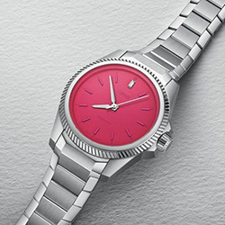 - Циферблат: Розовый, бриллиант багетной огранки на «12 часов»