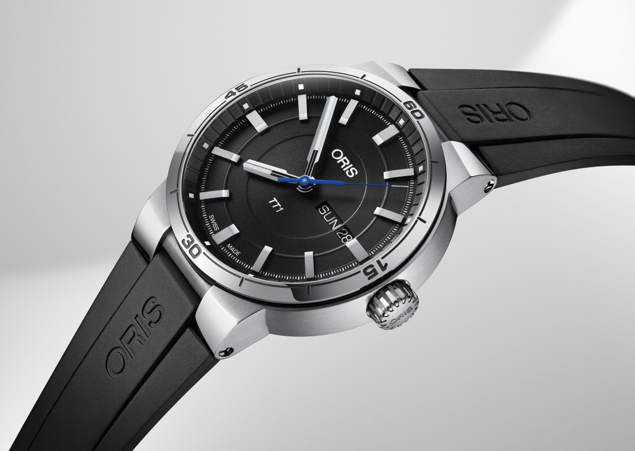 Дизайнеры Oris улучшили конструкцию новых часов TT1. Так, корпус часов был удлинен, чтобы они более элегантно «сидели» на запястье, а характерные для старой модели массивные ушки для ремешка были, напротив, укорочены, чтобы и вращающийся браслет из нержавеющей стали, и черный резиновый ремешок более эргономично размещались как на небольших, так и на более крупных запястьях. Циферблат стал еще более трехмерным благодаря подвижному диску с датами, граненым цифрам и рельефному кольцу циферблата. Сочетание матовых и отполированных элементов корпуса и браслета часов дополнительно подчеркивают их спортивный характер.