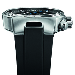 Справа и слева от заводной головки, в направлении «2 и 4 часа», находятся кнопки управления функциями хронографа. Лицевую сторону корпуса защищает плоское сапфировое стекло с антибликовым покрытием, а тыльная сторона корпуса закрыта завинчивающейся задней крышкой с прозрачным окошком, сквозь которое виден знаменитый красный ротор. Водонепроницаемость конструкции корпуса составляет 10 атм.