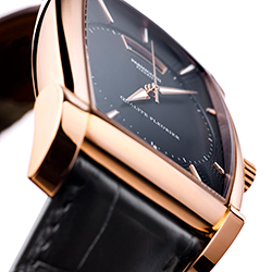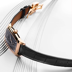 Как и в других моделях Kalpa, в ней присутствуют узнаваемые черты утонченного дизайна механизма, открытые для обозрения со стороны задней крышки из сапфирового стекла: узор «Женевские полосы», скошенные кромки мостов и жемчужное зернение. Работая с частотой 21600 полуколебаний в час (3 герца), этот фигурный калибр идеально вписан в ставший культовым бочкообразный корпус из 18-каратного розового золота, полностью отполированный вручную. «Лицо» модели – многоуровневый черный циферблат, матовый в центре и возле шкалы указателя запаса хода, украшенный «плетеным» узором гильоше по краям (выполнен вручную).