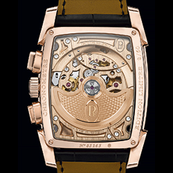 Будучи достаточно мягким и непростым в работе материалом золото свидетельствует о высочайшем профессионализме специалистов Дома, который также подтверждается искусно скелетонированными мостами и их декором. Кроме того, имеется балансовое колесо с регулируемой инерцией, поддерживаемое двухопорным мостом, повышающим стабильность работы балансового узла и его и устойчивость к внешним воздействиям.