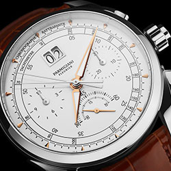 Часы Tonda Chronor Anniversaire со смещенными счетчиками обеспечивают максимальную читаемость указателей хронографа, минутной шкалы и тахиметрической шкалы. Секундный сектор на отметке «6 часов» является фирменным знаком хронографов мануфактуры Parmigiani Fleurier.