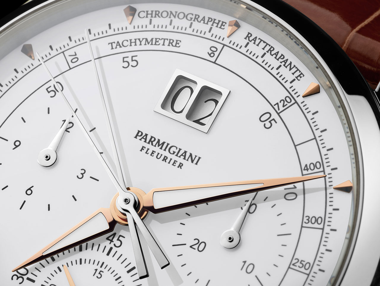 Основная идея производства – отсутствие дополнительных модулей – признак, который очень ценится знатоками часового мастерства. Каждый компонент должен быть встроен в механизм и удерживаться на одной платине. Поэтому дизайнеры начали работу с чистого листа, и после проведения большого количества исследований они разработали первый встроенный хронограф мануфактуры Parmigiani Fleurier. Этот процесс разработки занял более двух лет и был подкреплен 20-летним опытом марки, в том числе в изготовлении специальных инструментов. Этот часовой механизм с ручным подзаводом включает хронограф, сплит-функцию, большой указатель даты, и все это представляет одно единое целое.