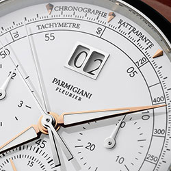 Циферблат с эмалевым покрытием «Grand feu» подчеркивает имидж мануфактуры Parmigiani Fleurier и ее высокие достижения в часовом мастерстве. Циферблат с эмалевым покрытием является вершиной часового искусства по мнению многих знатоков этого дела. Циферблаты Parmigiani Fleurier и особенно циферблат Tonda Chronor еще более уникален, так как он оснащен накладными часовыми отметками из золота. Эти накладные отметки крепятся с внутренней стороны циферблата, а не к эмалевому покрытию с внешней стороны. Закаливание циферблата с уже выполненным на нем эмалевым покрытием – это крайне рискованный процесс, и поэтому для получения циферблата идеального качества требуется несколько заготовок.