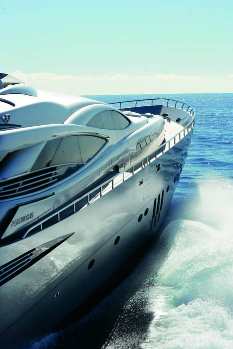 Стальные корпуса моделей этой серии напоминают фирменный серебряный цвет яхт «Pershing».
