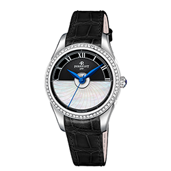 Изысканно-изящные модели женских часов «Perrelet Diamond Flower Amytis» с контрастной цветовой палитрой, драгоценными камнями и визуальной магией двойного ротора комплектуются кожаными ремешками белого и чёрного цвета, и снабжены надёжной клипсовой застёжкой из нержавеющей стали.