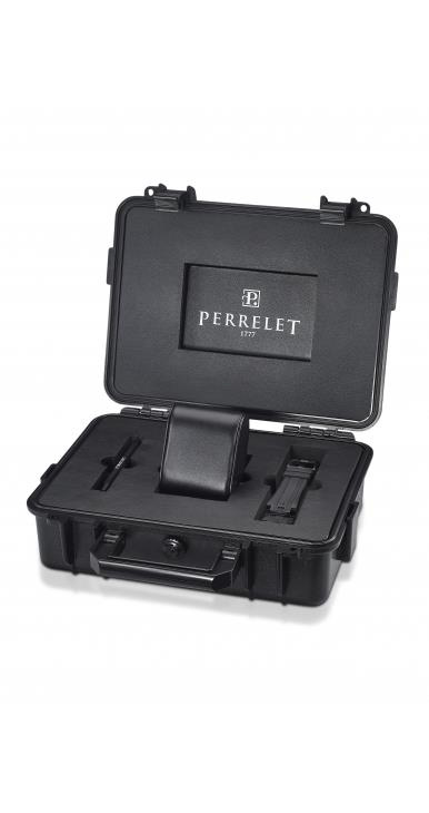 - Механизм с автоподзаводом собственного производства, калибр Perrelet P-331-MH, сертифицированный COSC и Chronofiable.