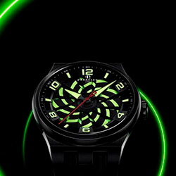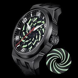 - Циферблат: Технология турбины с 12 лопастями из черного анодированного алюминия, светящиеся спирали Super-LumiNova, светящиеся арабские цифры и индексы