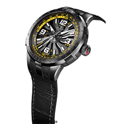 Новые модели выполнены корпусе из стали диаметром 48 мм с черным PVD-покрытием. Имеют водозащиту до 5 метров и сложный трехмерный циферблат с гипнотической турбиной, лопасти которой вращаются при малейшем движении запястья. Как только 12 лопастей турбины приводятся в движение, создается ощущение ярких вспышек цвета от нижнего циферблата. Когда лопасти завершают свое вращение, начинает просматриваться нижний циферблат, расположенный под турбиной и украшенный синими, красными, желтыми или бежевыми полосами.