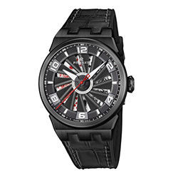 Черное внутреннее кольцо акцентирует внимание на крупных индексах с родиевым покрытием, дополнено четными арабскими цифрами и покрытых Super-LumiNova, как часовая и минутная стрелки. Это обеспечивает их оптимальную читаемость в условиях недостаточной освещенности. Ярко-красная секундная стрелка соответствует бубновой масти и делает дисплей более ярким.