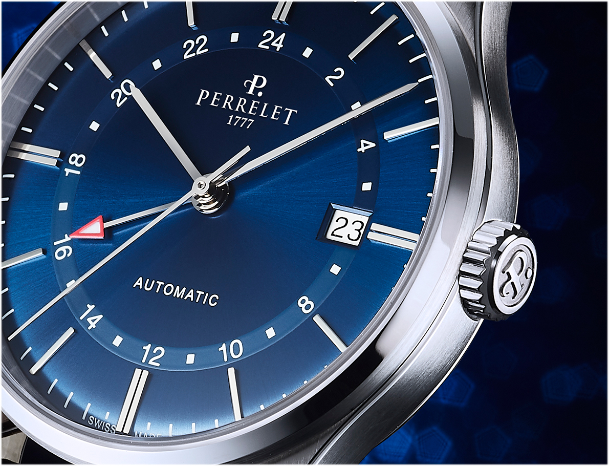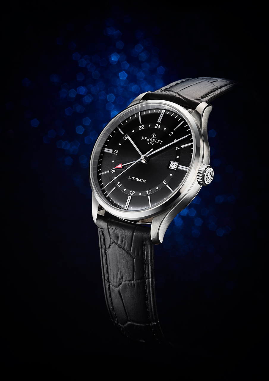 Модели Weekend 3-Hands, Open Heart и GMT дополнены черным ремешком из телячьей кожи с теснением под кожу аллигатора и классической застежкой с логотипом Perrelet. Также представлен вариант с эргономичным стальным браслетом из 7 звеньев с чередованием атласной и полированной отделки.