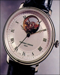 Начало такой стратегии относится к 1991 году, когда были выпущены только 300 экземпляров кварцевых часов. Но уже в 1994году Frederique Constant перешёл на автоматические механизмы производства компании «ЕТА». Сразу же появилась идея: а что если открыть баланс и тем самым продемонстрировать покупателю, что он видит не кварцевые часы. Конечно, тогда в суете, компания совершила большую ошибку незапатентовав это достижение и его название «Open Heart» («Открытое сердце»), и тут же появилось несчётное количество копий. В 1995 году было выпущено несколько механических коллекций, началась работа с DuboisDepraz, а также были созданы женские модели. Модули усложнений в те времена были новинкой, и компания экспериментировала с ними: день-дата, вечный календарь, полный календарь. Именно тогда компания впервые обратилась к Жану-Марку Видеррехту, который согласился создать для Frederique Constant секундный ретроград. Однако в 1999 году эксперименты прекратились, поскольку стало ясно: нормальные усложнения закончились. Дальше начались рискованные фантазии. Стал ясно, что компания должна найти такую простую, но, вместе с тем, эксклюзивную идею, которая позволила бы сразу выделить марку, но не заставляла бы каждый год с трудом сводить концы с концами. Система «Open Heart» и стала такой идеей. Было решено создать собственный мануфактурный механизм, очень простой: с ручным заводом и двумя стрелками. Работа над этим механизмом продолжалась с 2001 – по 2004 год. К этому времени стало окончательно ясно, что разработка календарных модулей и лунных календарей на собственном производстве гораздо дешевле, чем делать это у стороннего производителя, например, у Dubois-Depraz или Agenhor. Чтобы образ Frederique Constant постоянно ассоциировался с «доступной роскошью», приходилось постоянно оптимизировать производство. В то время, когда другие производители повышали свою цену, Frederique Constant наращивал объёмы выпуска, сохраняя при этом высокий уровень качества. В настоящее время Frederique Constant выпускает 120 тыс. экземпляров часов в год, это намного больше, чем другие независимые производители, работающие в том же сегменте.