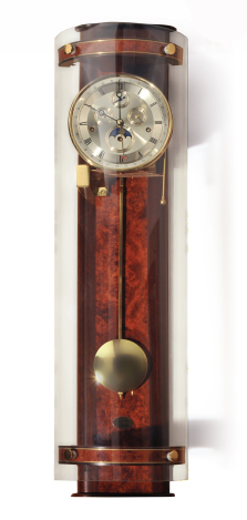 Современный дизайн, подкрепленный старыми традициями. Механическая модель. Развёрнутый календарь, позволяет отследить смену даты, дня недели, месяца и движение лунного календаря. Звучание мелодии Westminster каждые 15 минут. Корпус натуральное дерево и стекло. Производство: Германия.