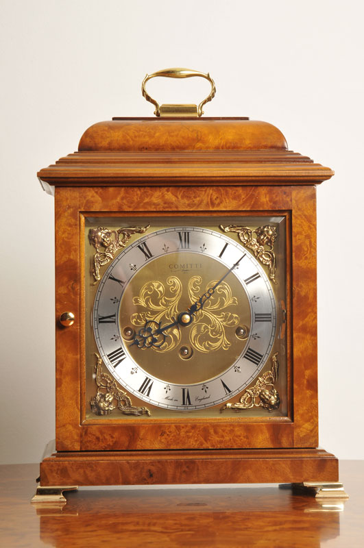 Каждые часы фабрики Comitti of London имеют уникальный дизайн, в георгианском стиле, типичные для мастера Джона Элликота, приблизительно 1730 год. Корпус часов, декорирован отборным ореховым шпоном с инкрустацией атласным деревом, что подчеркивает естественную красоту и структуру древесины Корпус вручную обработан воском для достижения эффекта античной старины.