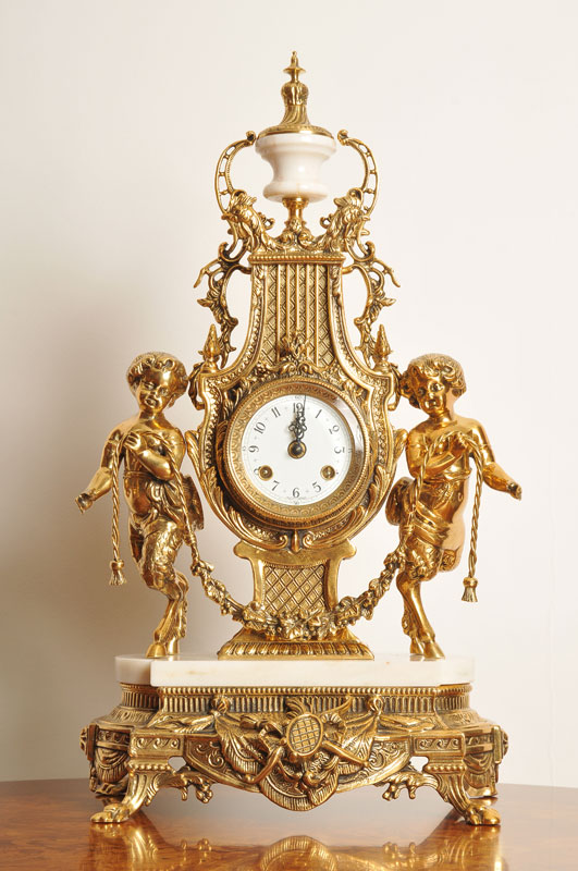 Богатый опыт в производстве интерьерных часов. Механическая модель. Оригинальное исполнение модели в античном стиле. Декоративное оформление часов выполненное вручную. Звучание мелодии Westminster каждые 15 минут. Производство: Германия.
