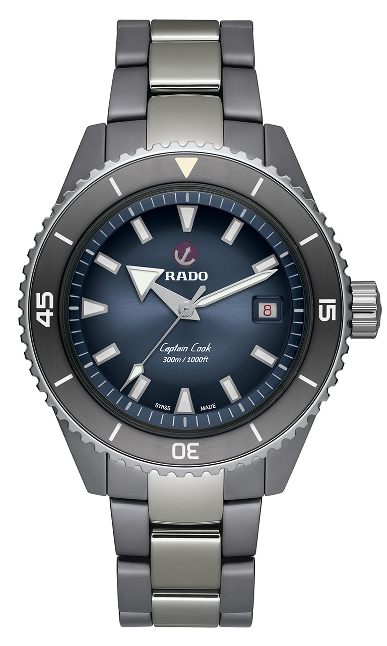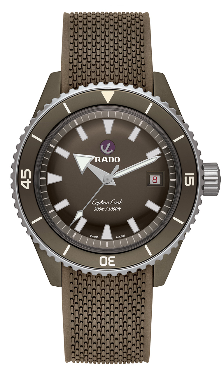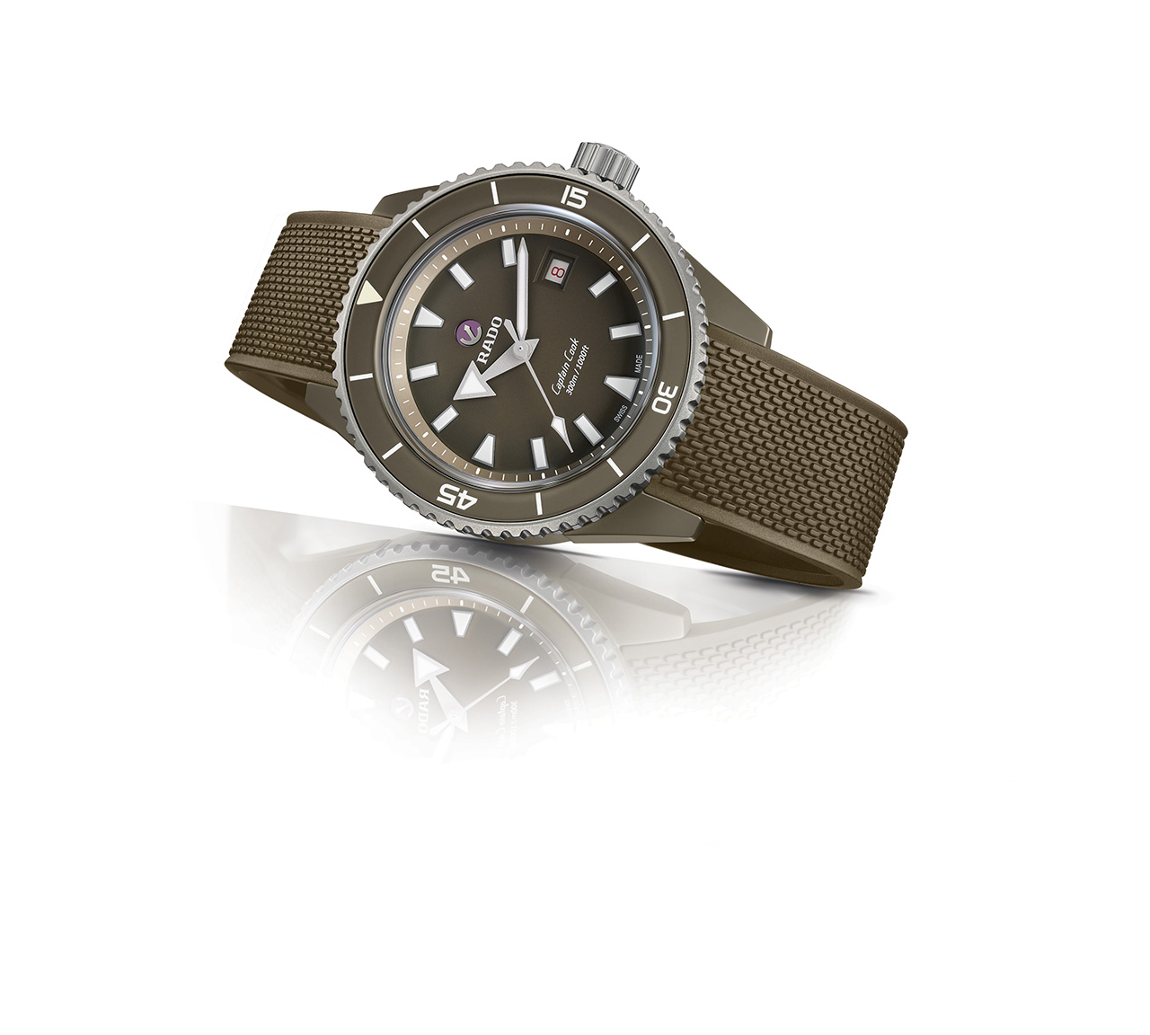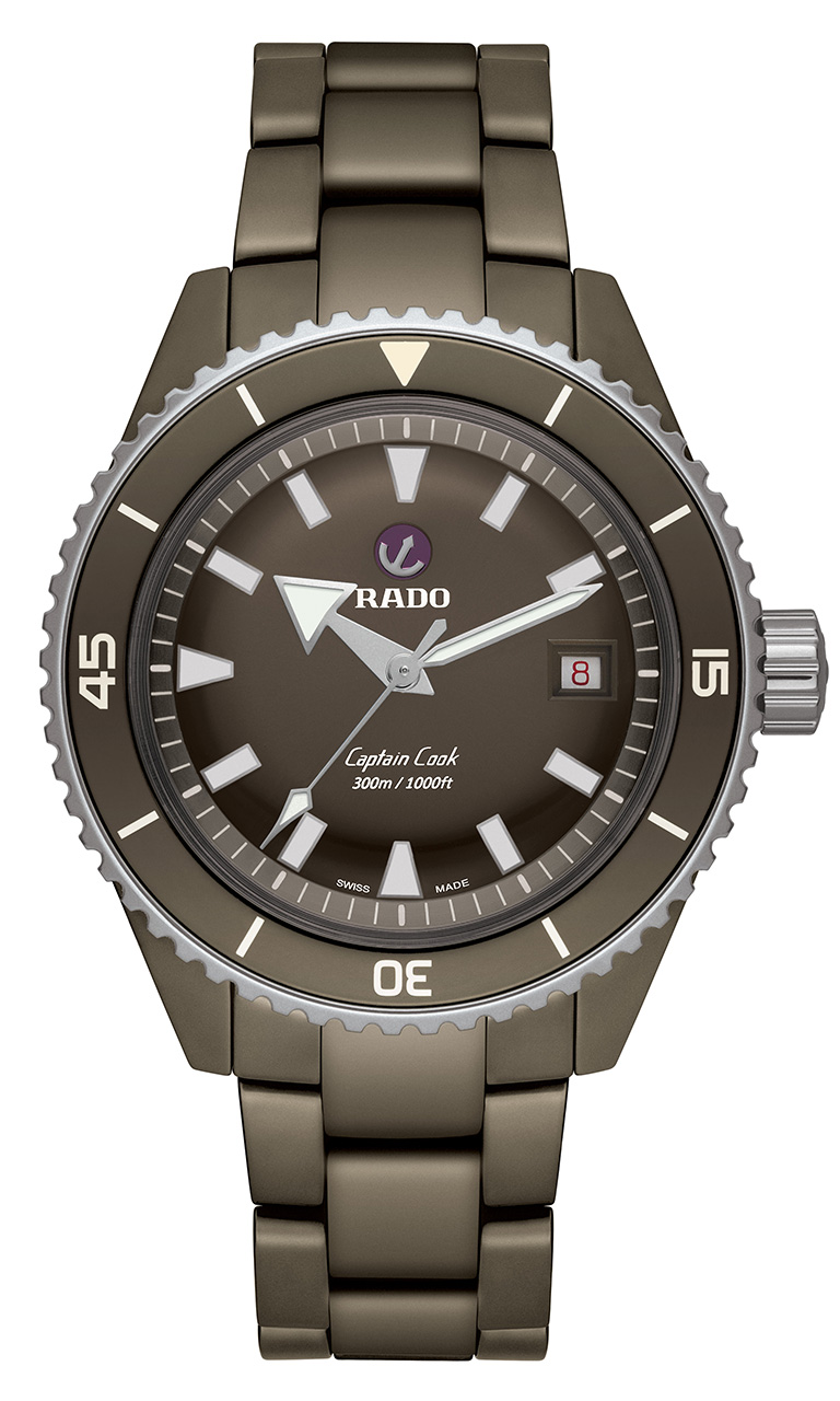 Новая модель часов Captain Cook High-Tech Ceramic Diver доступна в шести вариантах, каждый из которых имеет свой неповторимый характер. Все корпуса часов выполнены из высокотехнологичной керамики Rado: две модели в черном цвете и две в оливково-зеленом. Каждая из пар может поставляться как с каучуковым ремешком, так и с браслетом из высокотехнологичной керамики. Две дополнительные модели из плазменной керамики доступны с соответствующим браслетом из высокотехнологичной керамики. Выбирайте направление для отважного исследования – океан или вершину горы, и навстречу приключениям!