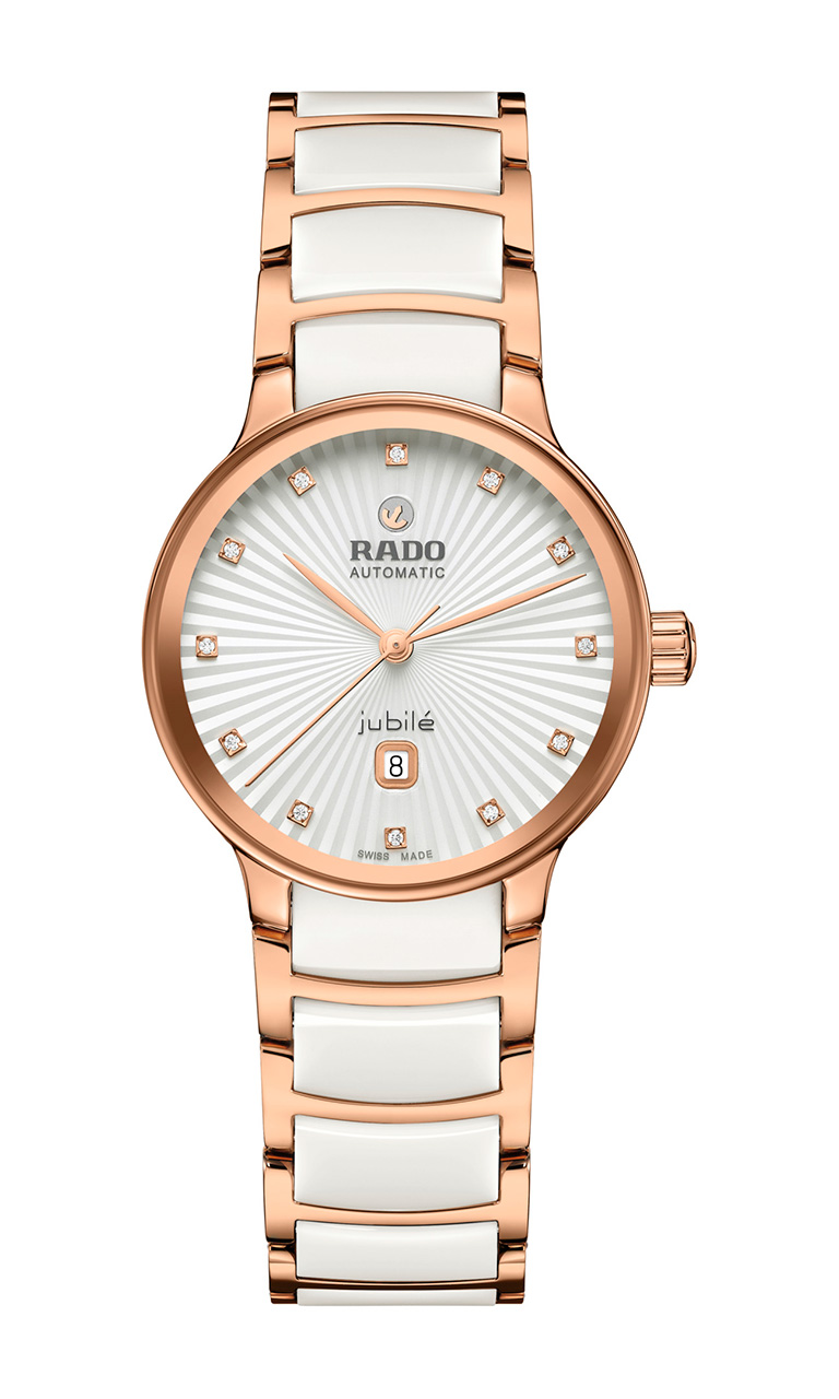 Логотип Rado в новой линейке Centrix больше, чем раньше, а надпись Jubilé возвращается на модели, в индексах которых присутствуют драгоценные камни. В маркировку крепления заводной головки была добавлена улучшенная лазером детализация, чтобы сделать ее более заметной. Вертикальные грани корпуса больше не имеют простой цилиндрической формы, а красиво закруглены, чтобы соответствовать более мягкому дизайну и плавно переходить в переработанную заднюю крышку корпуса с новой геометрией и меньшим количеством маркировок, а также выгравированным лазером серийным номером.